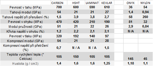 Karbonové vlákno má nejvyšší poměr pevnosti vůči hmotnosti a nejvyšší tepelnou vodivost. Je ideální pro využití na prototypy vyžadující nejlepší možnou pevnost a sílu.
